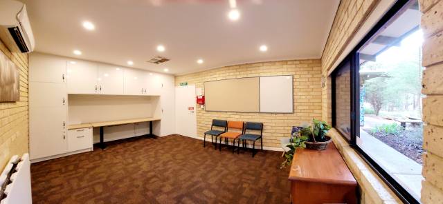 - Room comes with an air purifier, chairs, one round table or larger trestle tables available if required, evaporative air conditioning, Smart TV with HDMI cable, pin up boards and white board. There is also access to small foyer tea and coffee facilities.